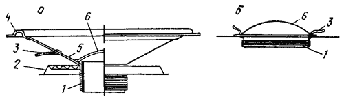 громкоговорителя а - с коническим диффузором, б - с купольной диафрагмой,