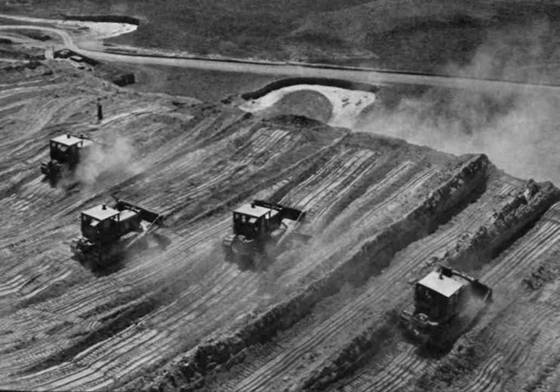 Горизонтальный формат снимка М. Альперта "Трассирование склона" (фото 33) также взят не случайно: кадр, вытянутый по горизонтали, позволяет охватить большое пространство, на котором развернулись гигантские работы по строительству канала. Попутно следует отметить точную линейную композицию снимка и его лаконичность – краткое и четкое выражение содержания.