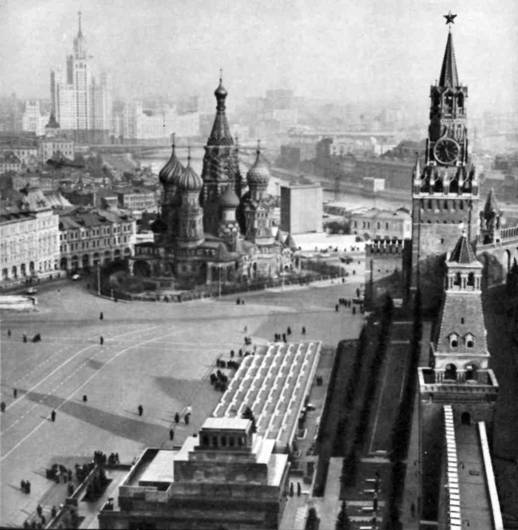 Именно таким образом В. Егоров использовал верхнюю точку на фото 26, где она дала возможность показать не только масштабы Красной площади, занимающей основную часть кадра, но и широкую перспективу столицы в глубине.