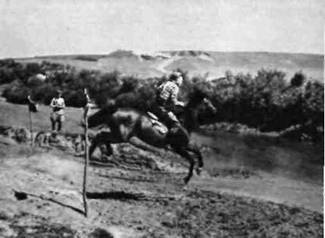 Фото 28 и 29 ясно показывают, какое влияние оказывает высота точки съемки на соотношение в кадре главного объекта изображения и фона. Фото 28 снято с верхней точки, и вследствие этого главное в кадре – лошадь и всадник – проецируется на фон земли, тональность которой близка к тону главного объекта. В результате объект сливается с фоном и словно теряется на нем. Композиция становится нечеткой и невыразительной, утрачиваются и ясность показа происходящего и вся динамика действия.