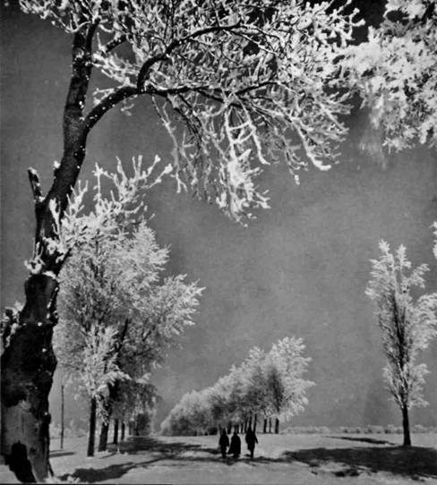 Так, в снимке В. Шаховского "Зимний пейзаж" (фото 39) использовано яркое солнечное освещение. Оно способствует передаче морозного солнечного дня. Передне-боковое направление света дает возможность живописно передать на снимке нарядное белое убранство деревьев, которое в сочетании с более темным тоном неба образует общую стройную и гармоничную тональность всего фотоизображения.