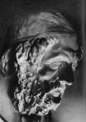 В снимке гипсовой модели (фото 47) моделирующий свет использован именно таким образом: яркие света (слева) здесь слишком резко контрастировали бы с глухими тенями (справа), если бы промежуточный средний тон, образованный моделирующим светом, не создал на модели гармоничного тонального перехода от света к тени.