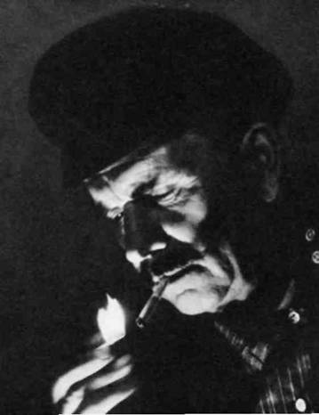 Общий световой рисунок найден правильно, и сильное, волевое лицо писателя изображено необычайно убедительно. Это освещение в сочетании с соответствующей световой отработкой фона и общей композицией портрета делает снимок завершенной фотографической картиной.